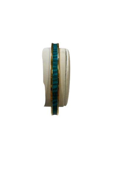 Apportez une note d’éclat naturel et sophistiqué à votre poignet avec le bracelet Amélia, un jonc raffiné en plaqué or, sublimé par un cuir de carpe des Dombes teinté d’un turquoise vibrant. Ce cuir rare et écoresponsable, issu d’un tannage végétal, dévoile une texture délicate et des reflets lumineux rappelant les eaux claires d’un lagon.
