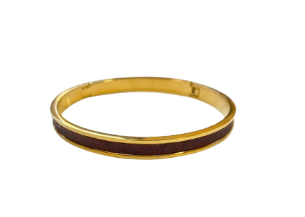 Rehaussez votre poignet d’une touche de caractère et d’élégance naturelle avec le bracelet Amélia, jonc délicat en plaqué or orné d’un cuir de carpe des Dombes teinté d’un bordeaux profond. Ce cuir d’exception, écoresponsable et issu d’un tannage végétal, dévoile une texture précieuse aux reflets subtils, évoquant la chaleur et la richesse des teintes automnales.