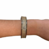 Sublime et lumineuse, cette manchette fine de 1 cm est recouverte d’un blanc irisé apportant une touche éclatante et élégante. La texture subtile à l’effet perlé fait rayonner la lumière à chaque mouvement, conférant un relief délicat à chaque création.