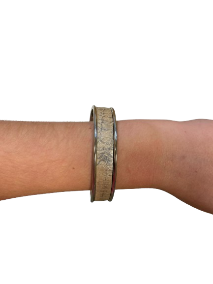 Le support en acier argenté, hypoallergénique et sans nickel, garantit un bijou confortable, résistant et durable. Sa finition argentée met en valeur l’intensité du blanc irisé pour une allure résolument chic et contemporaine. Grâce à sa forme ouverte, elle s’ajuste facilement par légère pression, convenant parfaitement aux petits et moyens poignets.
