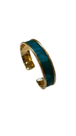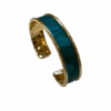 Montée sur un support en laiton écologique doré, sans plomb ni nickel, cette manchette est hypoallergénique et respectueuse de la peau. La finition dorée s’accorde parfaitement à l’intensité du turquoise, pour un rendu à la fois moderne et rafraîchissant. Grâce à sa forme ouverte, elle s’ajuste facilement par légère pression et convient aux petits et moyens poignets.
